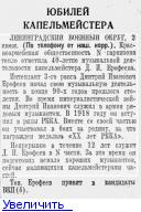 ЛЕНИНГРАДСКИЙ ВОЕННЫЙ ОКРУГ, 2 июня. (По телефону от наш. корр.). Красноармейская общественность N гарнизона тепло отметила 40-летие музыкальной деятельности капельмейстера Д. И. Ерофеева. Интендант 3-го ранга Дмитрий Иванович Дорофеев начал свою музыкальную деятельность в конце 90-х годов прошлого столетия. Во время империалистической войны Дмитрий Иванович служил в армии рядовым музыкантом. В 1918 году он вступил в ряды РККА. Вместе со своей частью он участвовал в боях за родину, за что награжден медалью «ХХ лет РККА».