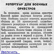 Военные оркестры обслуживают широкие массы воинов и населения. Необходимо повести настойчивую борьбу за улучшение их репертуара. Пора выбросить из него все безидейное, серое, не отвечающее высоким культурным запросам советских людей.