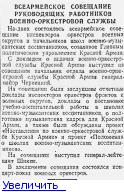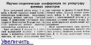 Все это заметно тормозит развитие советской военно-оркестровой музыки. Это показало и совещание по вопросам военно-оркестровой музыки, проведенное в конце июня секретариатом Союза советских композиторов и Инспекцией военных оркестров. Выступавшие на совещании товарищи указывали на необходимость принять срочные меры, чтобы улучшить творческую работу композиторов по созданию музыкальных произведений для военных оркестров.