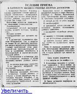 Для военнослужащих: возраст до 35 лет, положительная партийно-политическая характеристика, служебная аттестация, годность к учебе по состоянию здоровья, нахождение по менее одного года на службе в РККА или в В. М. Флоте.